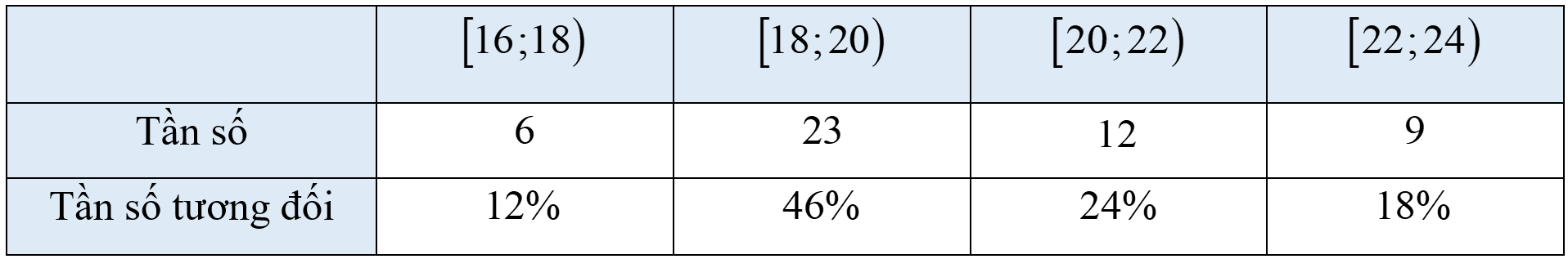 Lập bảng tần số ghép nhóm và tần số tương đối ghép nhóm từ biểu đồ trên.