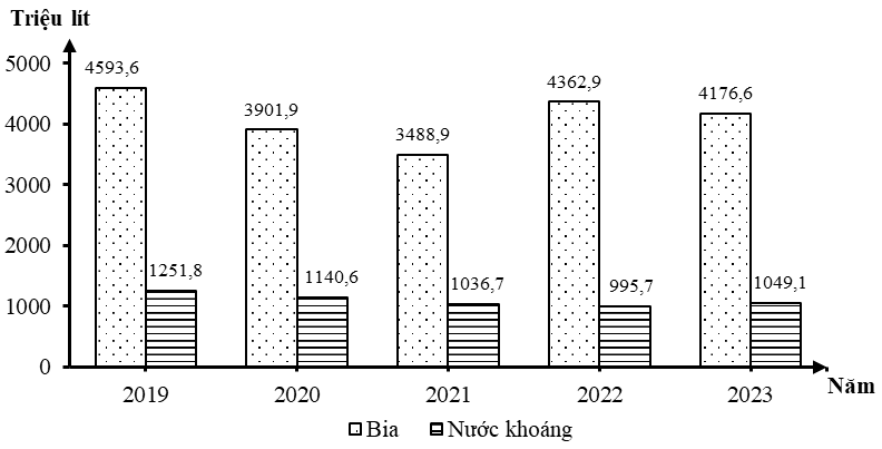 Dựa vào sản lượng một số sản phẩm công nghiệp ở nước ta giai đoạn 2019 - 2023 và lựa chọn nhận xét đúng.