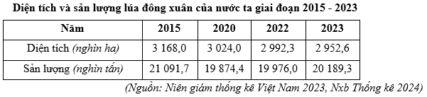 | b) Giai đoạn 2015 - 2023, diện tích lúa đông xuân nước ta giảm. | ||