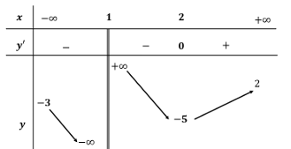 Cho hàm số $y = f(x)$ xác định trên ${\mathbb{R}} \smallsetminus \left\{ 1 \right\}$, liên tục trên mỗi khoảng xác định và có bảng biến thiên như sau: