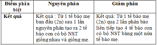3. Phân biệt kết quả nguyên phân với giảm phân?