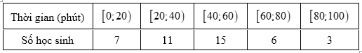 Khảo sát thời gian sử dụng điện thoại trong một ngày của một lớp học thu được mẫu số liệu ghép nhóm sau: