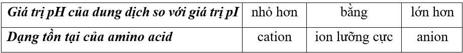 a) Nếu pH = pI, amino acid tồn tại dạng ion lưỡng cực.