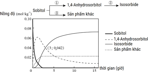 | b) Tốc độ trung bình của quá trình điều chế isosorbide trong 3 giờ đầu là 0,014 mol/kg.h (tính theo isosorbide). | ||