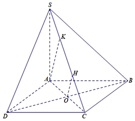 Gọi $O$ là tâm hình vuông $ABCD$, vẽ $OH\bot SC,AK\bot SC$, với $H,K \in SC$.