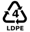 LDPE là một chất dẻo dễ tạo màng, có tính dai bền nên được sử dụng làm túi nylon, màng bọc, bao gói thực phẩm. LDPE thuộc nhóm nhựa PE (polyethylene) và thường được nhận biết qua ký hiệu đặc trưng in trên bao bì như hình bên.