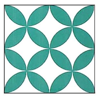 Viên gạch men dùng để lát nền nhà là một hình vuông có cạnh bằng 80 cm (xem hình bên dưới). Mỗi viên gạch có 4 bông hoa, mỗi bông hoa gồm 4 cánh hoa. Mỗi cánh hoa (phần màu xanh) là phần giao nhau của hai hình tròn có cùng bán kính và khoảng cách giữa hai tâm là $20\sqrt{2}$ cm. Ước tính ở công đoạn tráng men, phần màu xanh có chi phí 50 nghìn đồng trên một mét vuông, còn phần màu trắng có chi phí 30 nghìn đồng trên một mét vuông. Tính chi phí (đơn vị: tỉ đồng) của công đoạn tráng men này, khi cơ sở sản xuất dự định sản xuất 100000 viên gạch như thế (làm tròn kết quả đến hàng phần trăm)