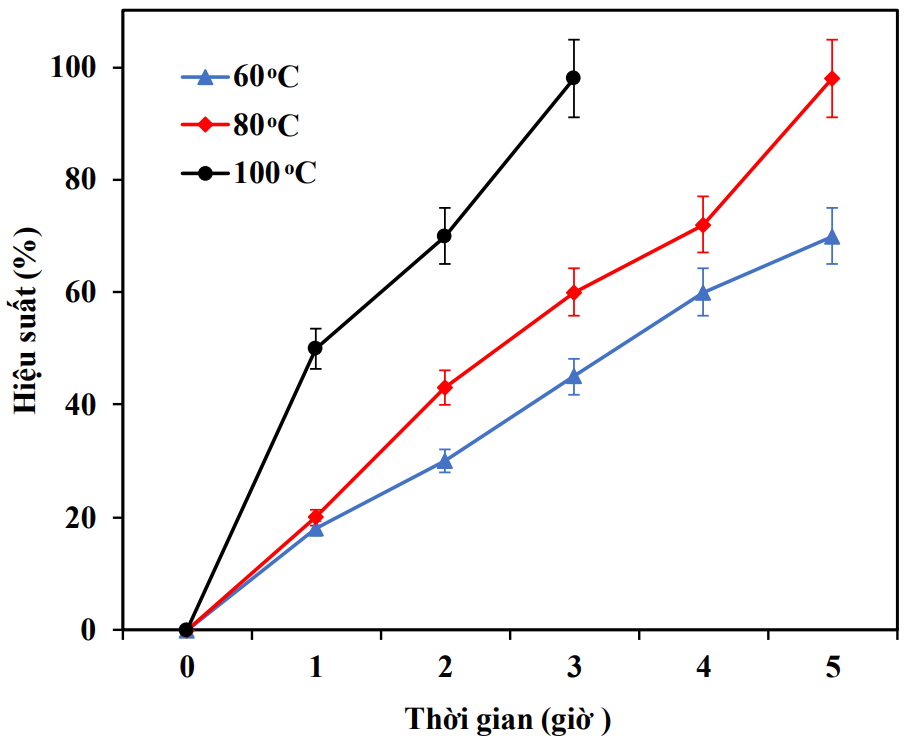 Bước 6: Tính hiệu suất phản ứng dựa trên khối lượng xà phòng thu được so với lí thuyết. Kết quả thí nghiệm được biểu diễn trong đồ thị như sau: