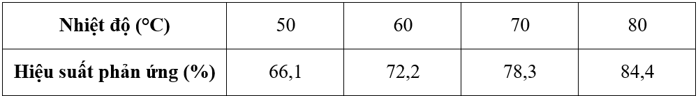 Nghiên cứu cho thấy nhiệt độ thực hiện thí nghiệm ảnh hưởng đến hiệu suất phản ứng này như sau: