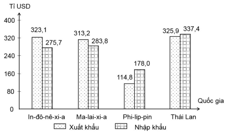 | d) Tổng trị giá xuất nhập khẩu của In-đô-nê-xi-a lớn hơn Thái Lan. |