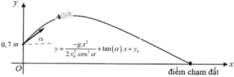 Trong mặt phẳng tọa độ Oxy, chọn điểm có tọa độ \(\left( {O;{y_0}} \right)\) là điểm xuất phát thì phương trình quỹ đạo của cầu lông khi rời khỏi mặt vợt là: