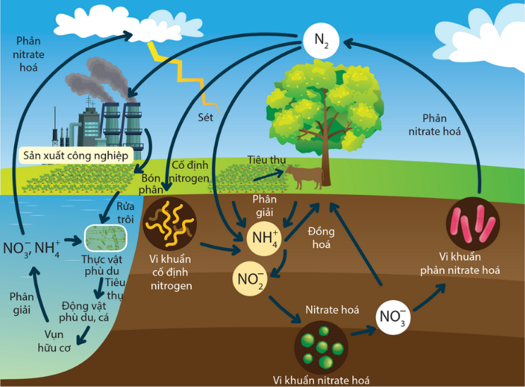 Chu trình nitrogen là một quá trình mà theo đó nitrogen bị biến đổi qua lại giữa các dạng hợp chất hóa học của nó.