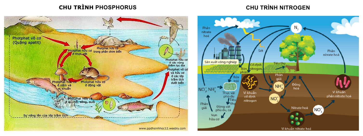 Khác biệt cơ bản giữa chu trình phosphorus với chu trình Carbon:
