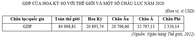 Cho bảng số liệu: Căn cứ vào bảng số liệu trên, tỉ trọng GDP của châu Á