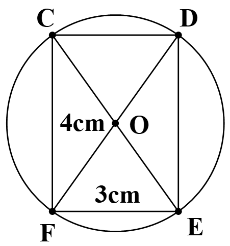Tính bán kính đường tròn ngoại tiếp hình chữ nhật $CDEF$ (hình sau).