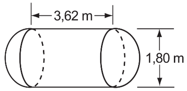 Một xe bồn chở nước sạch cho một khu chung cư có 200 hộ dân. Mỗi đầu của bồn chứa nước là 2 nửa hình cầu (có kích thước như hình vẽ). Bồn chứa đầy nước và lượng nước chia đều cho từng hộ dân. Tính xem mỗi hộ dân nhận được bao nhiêu lít nước sạch? (làm tròn đến chữ số thập phân thứ hai, lấy $\pi = 3,14$).