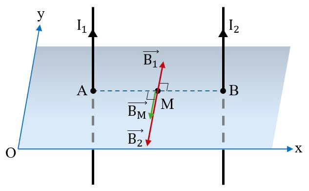 Cho hai dây dẫn thẳng dài vô hạn, đặt song song lần lượt có dòng điện I1 = 2 A và I2 = 4 A