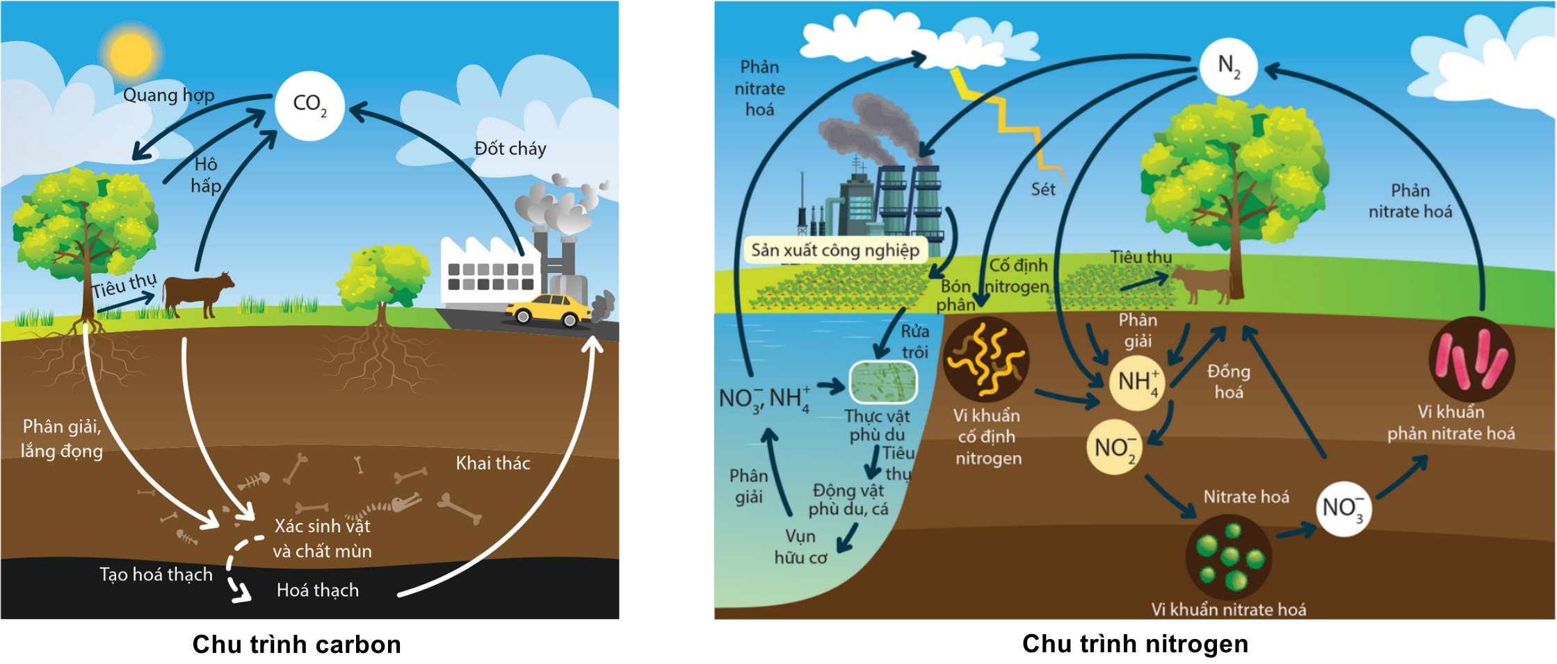 Điểm giống nhau giữa chu trình carbon, chu trình nitrogen và chu trình nước là
