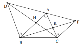 Cho tam giác $ABC$ vuông tại $A$. Vẽ ra phía ngoài tam giác đó các tam giác $ABD$ vuông cân ở $B,\,\, ACF$ vuông cân ở $C$. Chứng minh $AH = AK$