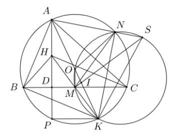 Chứng minh $H,\,\, M,\,\, K$ thẳng hàng