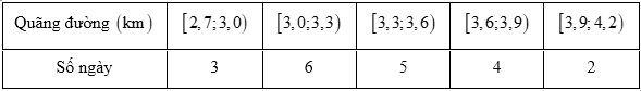 Mỗi ngày bác Hương đều đi bộ để rèn luyện sức khoẻ. Quāng đường đi bộ mỗi ngày (đơn vị: km ) của bác Hương trong 20 ngày được thống kê lại ở bảng sau: