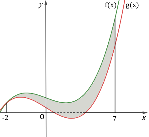Hưởng ứng chính sách hiện đại hóa nông thôn, người dân ở khu phố A đồng lòng cùng nhau góp tiền đổ bê tông một đường đi trong khu phố (phần được tô đậm trong hình vẽ). Biết rằng khi chọn hệ trục tọa độ Oxy với đơn vị độ dài trên mỗi trục tọa độ là 10 m, các đường cong $AB,CD$ là mép đường được cho bởi đồ thị hàm số $f(x) = \dfrac{1}{32}x^{3} - \dfrac{3}{8}x + \dfrac{3}{2}$ và $g(x) = \dfrac{1}{32}x^{3} - \dfrac{5}{8}x + \dfrac{1}{2}$, đồng thời lớp bê tông được đổ dày 16 cm và giá tiền 1 m3 bê tông là 1080000 đồng. Tính số tiền (đơn vị triệu đồng) cần dùng để đổ bê tông con đường đó (làm tròn kết quả đến hàng đơn vị).