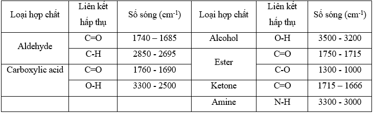 Cho biết số sóng hấp thụ đặc trưng trên phổ hồng ngoại của một số nhóm chức cơ bản như sau: