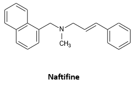 Naftifine là một loại thuốc kháng nấm hoạt động bằng cách ngăn chặn sự phát triển của các loại nấm nhạy cảm. Naftifine được sử dụng để điều trị một số bệnh nhiễm trùng nấm da như hắc lào, nấm kẽ chân và ngứa vùng bẹn và đùi trên. Naftifine có công thức cấu tạo như sau: