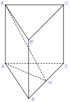 Vẽ hình lăng trụ đứng $ABC.A'B'C'$ có đáy $ABC$ là tam giác đều. Gọi M là trung điểm của BC.