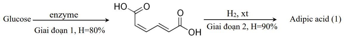 (d) Lượng adipic acid được tạo từ 225 kg glucose theo sơ đồ (1) có thể sản xuất được 179 kg chỉ nha khoa. Biết rằng chỉ nha khoa chứa 92% về khối lượng poly(hexamethylene adipamide).
