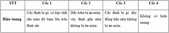 Một nhóm học sinh tiến hành thí nghiệm về ăn mòn của kim loại (đinh thép). Nhóm học sinh đưa