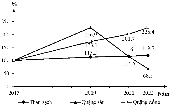 Cho biểu đồ: Tốc độ tăng trưởng sản lượng khai thác một số loại khoáng sản nước ta,
