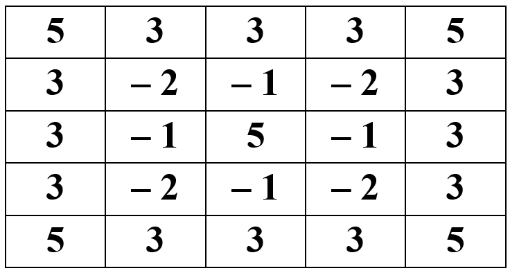 Bạn An đến một hội chợ được tổ chức gần nhà trong dịp tết Nguyên Đán. Bạn tham gia trò chơi ném bi. Đích đến là một bảng có 25 ô như hình vẽ. Cách tính điểm như sau: