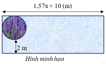Một cái sân hình chữ nhật có độ dài của một cạnh như hình vẽ. Ở góc sân, người ta làm một cái bồn hoa hình tròn có bán kính $x$ mét ($x > 0$). Biết vòng tròn tiếp xúc với 2 cạnh của hình chữ nhật và khoảng cách từ cạnh (chiều dài) của hình chữ nhật đến đường tròn là 2 mét (xem hình minh họa). (lấy $\pi = 3,14$)