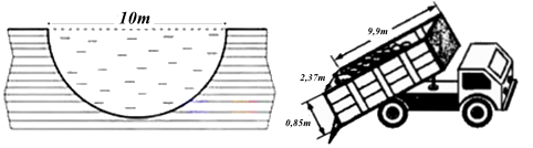 b) Người ta thuê những xe tải có thùng xe dạng hình hộp chữ nhật, lòng trong thùng dài 9,9 mét, rộng 2,37 mét và cao 0,85 mét. Nhưng con đường từ nơi cung cấp đất đến ao bị giới hạn trọng tải của phương tiện tham gia giao thông nên xe chỉ chở được 85% thể tích của lòng trong thùng xe. Hỏi cần thuê ít nhất bao nhiêu xe để lấp đầy cái ao? (Đất chở trên xe gần được nén chặt và gần như không có khoảng trống trong khối đất)