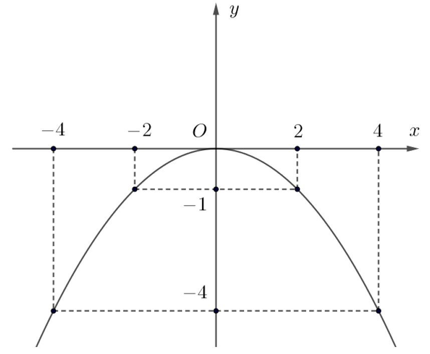 Cho hàm số $(P):y = - \dfrac{x^{2}}{4}$