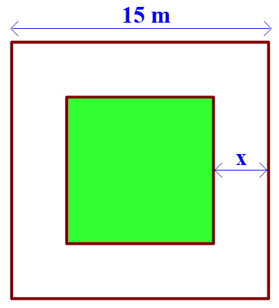 Một khu vườn hình vuông có cạnh bằng 15 m người ta làm một lối đi xung quanh vườn có bề rộng là $x$ (m).