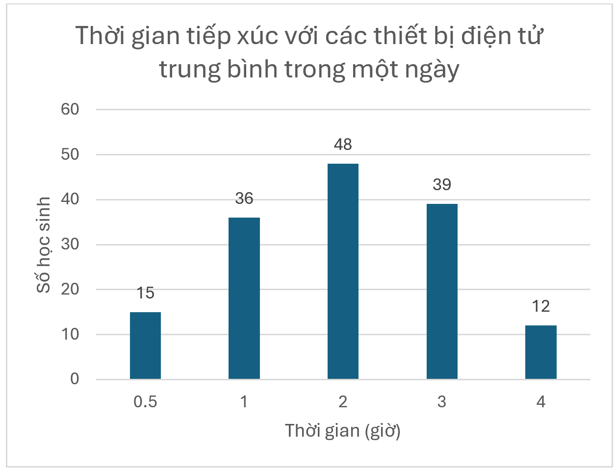 Một trường THCS khảo sát thời gian tiếp xúc với các thiết bị điện tử (điện thoại thông
