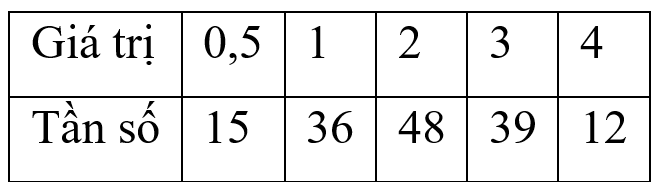 Một trường THCS khảo sát thời gian tiếp xúc với các thiết bị điện tử (điện thoại thông minh, ipad, máy tính, ti vi) trung bình trong một ngày của 150 học sinh và biểu diễn kết quả thu được trong biểu đồ sau: