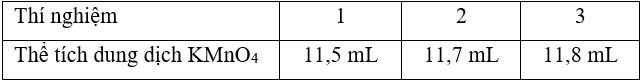 Lặp lại thí nghiệm trên thêm 3 lần, kết quả ghi nhận được thể tích dung dịch KMnO4 0,002 M như trong bảng sau: