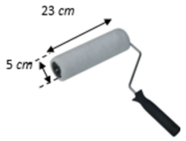 Một trục lăn sơn nước có dạng một hình trụ. Đường kính của đường tròn đáy trục lăn là 5 cm, chiều dài trục lăn là 23 cm (hình bên). Sau khi lăn trục lăn trọn 15 vòng trên một bức tường phẳng thì diện tích phủ sơn là bao nhiêu $cm^{2}$ (giả sử các đường lăn không chồng lấn lên nhau, lấy $\pi = 3,14$).