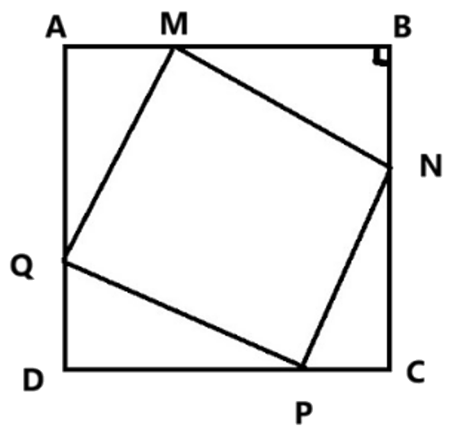 Diện tích hình vuông MNPQ nhỏ nhất khi tổng diện tích S của 4 tam giác vuông ở 4 góc hình vuông ABCD lớn nhất.