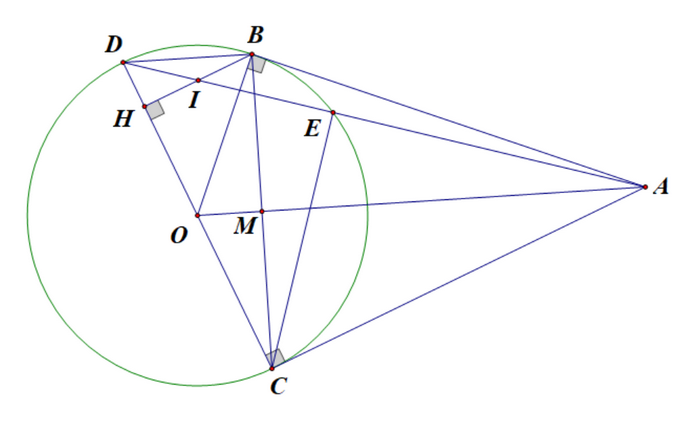 Từ điểm A nằm ngoài (O), vẽ hai tiếp tuyến AB, AC với đường tròn (B, C là các tiếp điểm). Kẻ đường kính CD của (O).