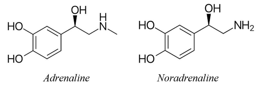 Adrenaline và Noradrenaline là 2 hormone quan trọng, đóng vai trò không thể phủ nhận trong cách cơ thể chúng ta phản ứng trước những tình huống căng thẳng và nguy hiểm. Adrenaline và Noradrenaline có công thức cấu tạo như sau:
