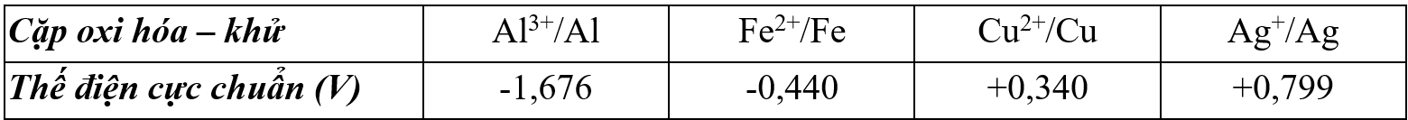 Cho bảng giá trị thế điện cực chuẩn của các cặp oxi hóa – khử như sau: