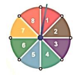 Hình dưới đây mô tả một đĩa tròn, cân đối bằng bìa cứng được chia làm tám phần bằng nhau và ghi các số 1; 2; 3; 4; 5; 6; 7; 8. Chiếc kim được gắn cố định vào trục quay ở tâm của đĩa. Quay đĩa tròn một lần. Tính xác suất của biến cố sau: “Mũi tên chỉ vào hình quạt ghi số là ước của 8”.