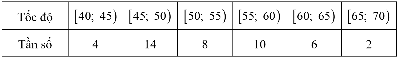 Mẫu số liệu dưới đây ghi lại tốc độ ( đơn vị là $km/h$ ) của $44$ ô tô khi đi qua trạm