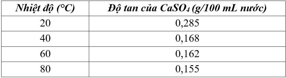 Dựa vào đoạn thông tin trên và giá trị độ tan của CaSO4 tại các nhiệt độ.