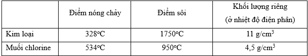 Có thể điều chế kim loại bằng cách điện phân muối chlorine nóng chảy của nó. Bảng sau cho thấy một số tính chất của kim loại và muối chlorine