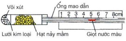Hình bên mô tả thời điểm bắt đầu thí nghiệm phát hiện hô hấp ở thực vật. Thí nghiệm
